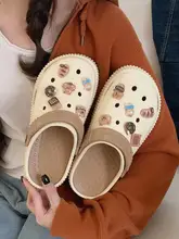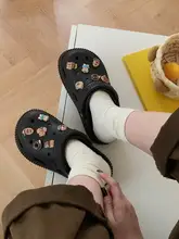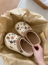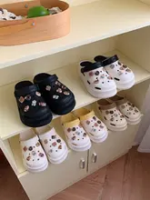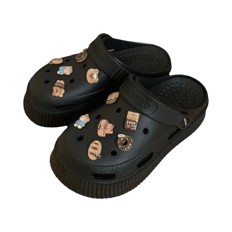 カートゥーンデザインの厚底サンダル【夏用・女性・カフェオレ・クマモチーフ・穴あけ不要】(セットアップ対応)