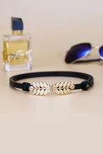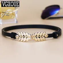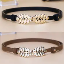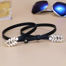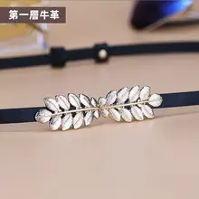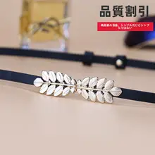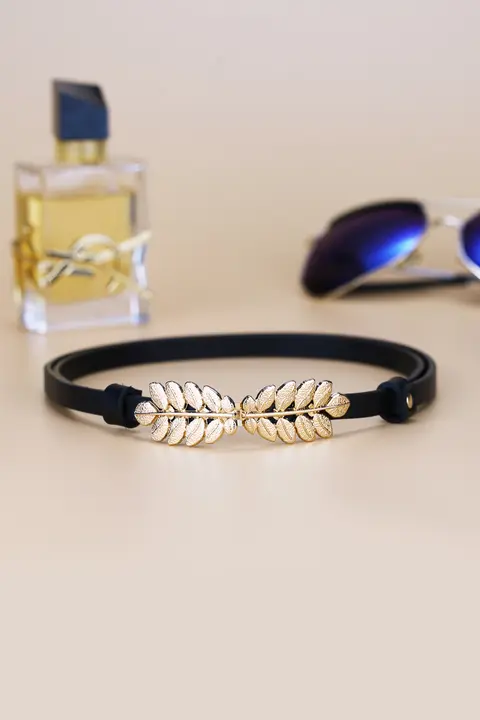 レディース 本革製細いウエストベルト【装飾付き・ブラック・デニムにも合う】