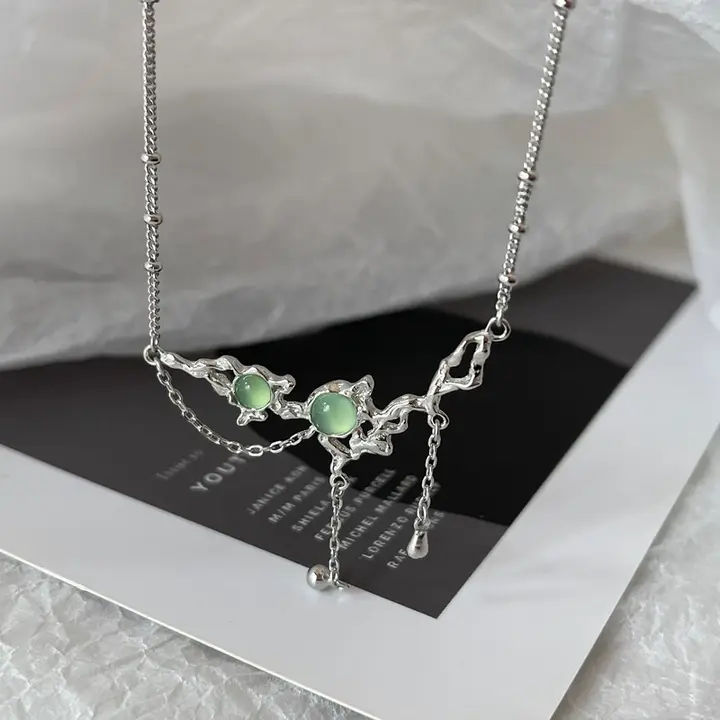 S925純銀製 モダン中華風 タッセル付きショートネックレス