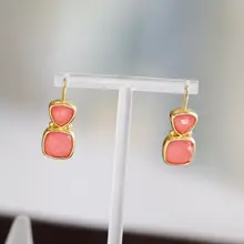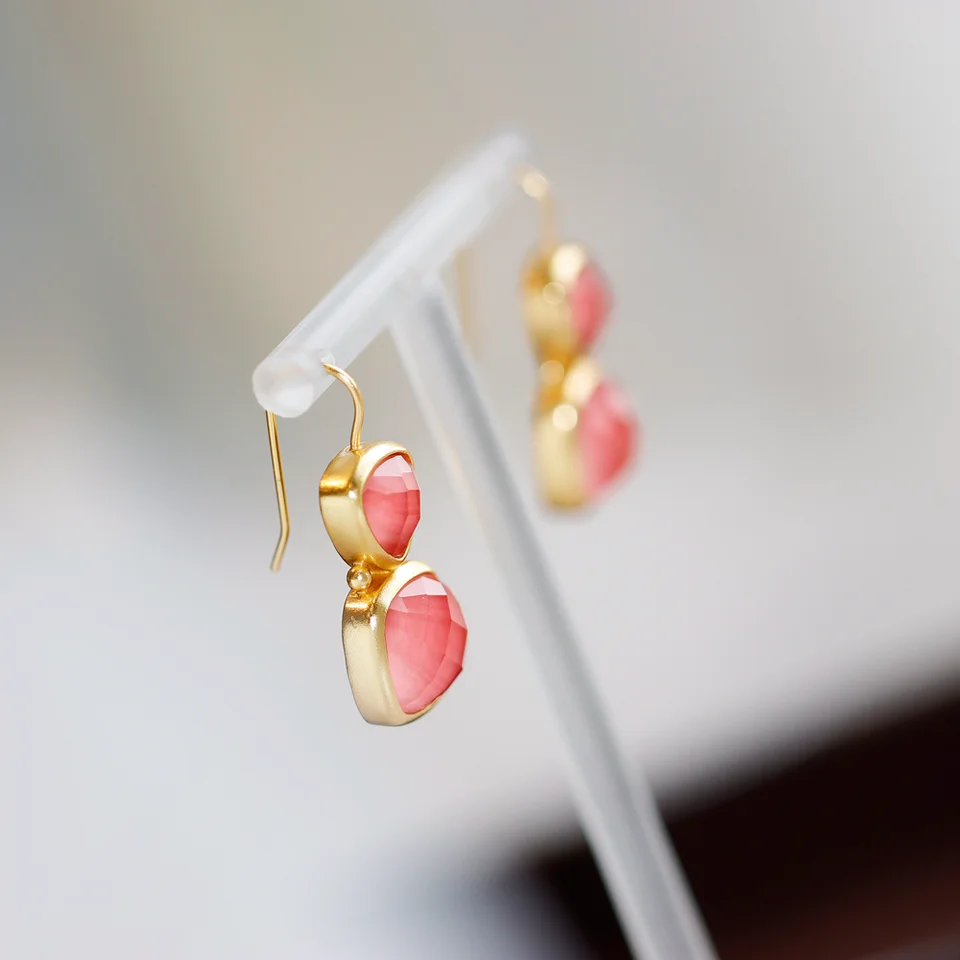 マットゴールドカラーの活力ある虹彩デザイン ジオメトリッククリスタルピアス
