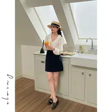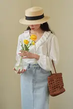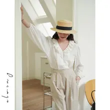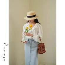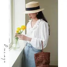 刺繍入りVネックシャツ【フランス風・秋夏用・デザイン性・女性用】