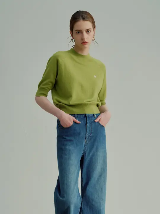 心惹かれる春の光!コットンウール混紡刺繍リブタートルネックニット