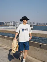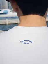白色コットンTシャツ【夏用・黒白写真プリント・発泡印刷・短袖】
