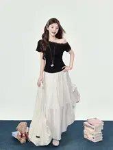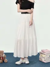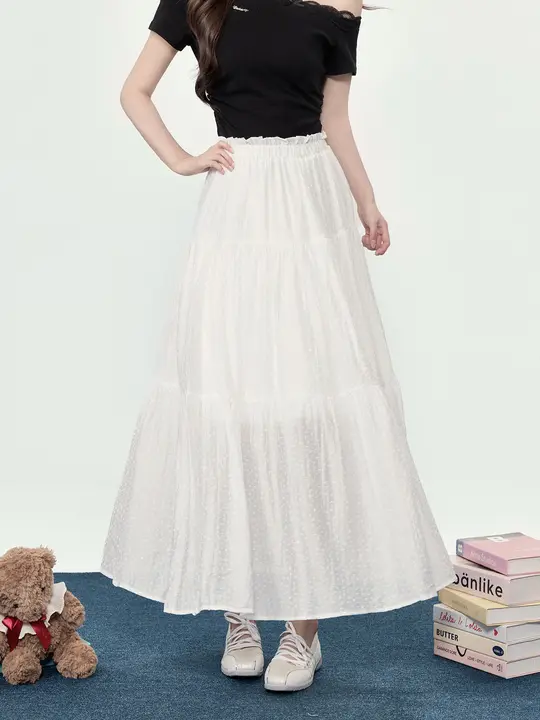優雅な印象の白色ハイウエストAラインスカート【フレンチスタイル・夏用】