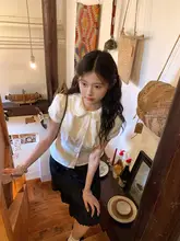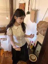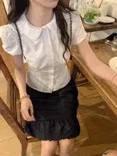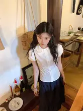 フレンチスタイル白いダルマ襟のウエストシェイプ半袖ブラウス【夏用・デザイン性抜群】