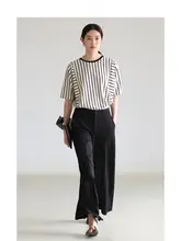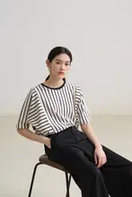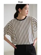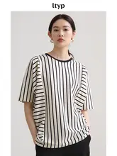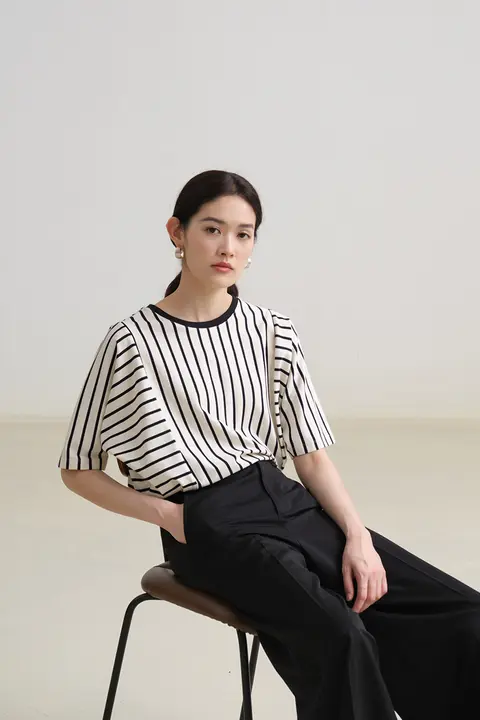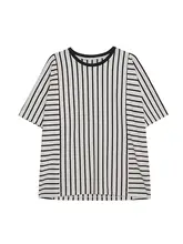 全棉個性分割ストライプTシャツ【夏用・フィット・レディース】