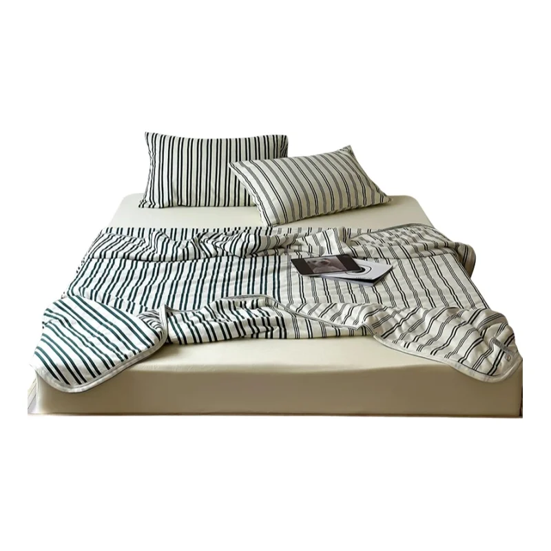 全棉製 夏用ストライプブランケット【洗濯可能・肌触りの良いエアコン用・夏用】