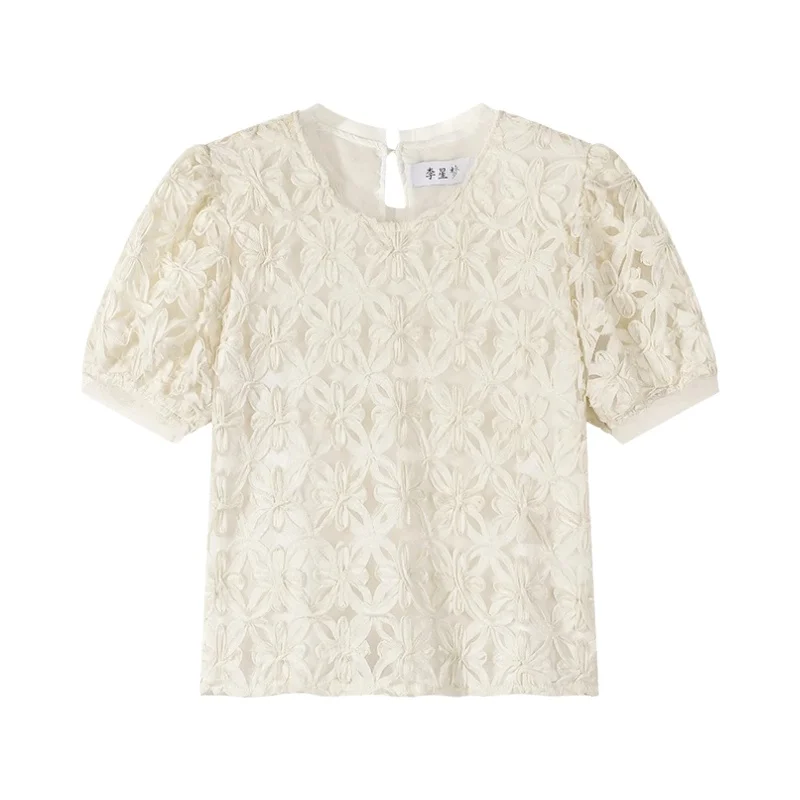 XinmonLee フランス風 やわらかいバブルスリーブ シースルートップス【レディース・デザイン性あり】