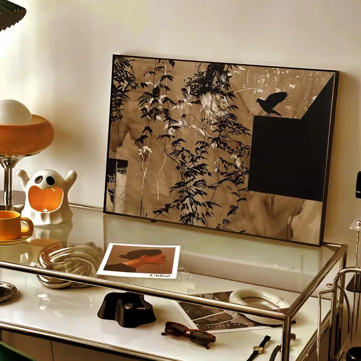 侘寂風 アートオイルペイント シルエット 壁掛けアート【ヴィンテージ風・リビングルーム・レストラン用】