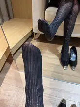 360度シームレスデザインの縦ストライプタイツ【豪華感・黒・小網目】
