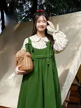 可愛いクマ柄の襟付きシャツとサスペンダー風ワンピースの2点セット【フラワープリント・レディース】