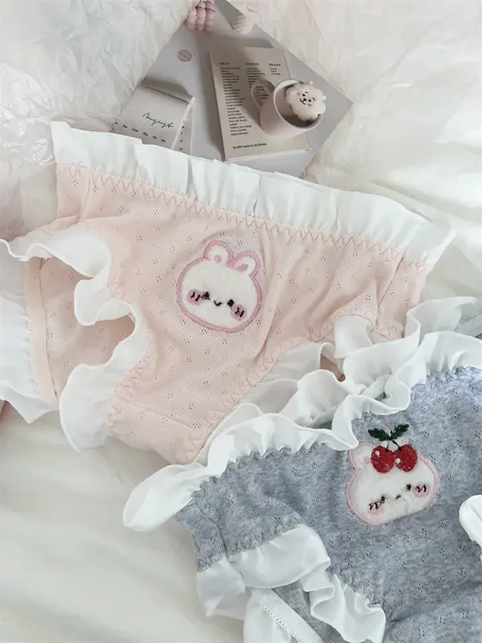 かわいいチェリー刺繍付きフリルデザインパンティ【レディース・中腰・コットン100%・ロリータスタイル】