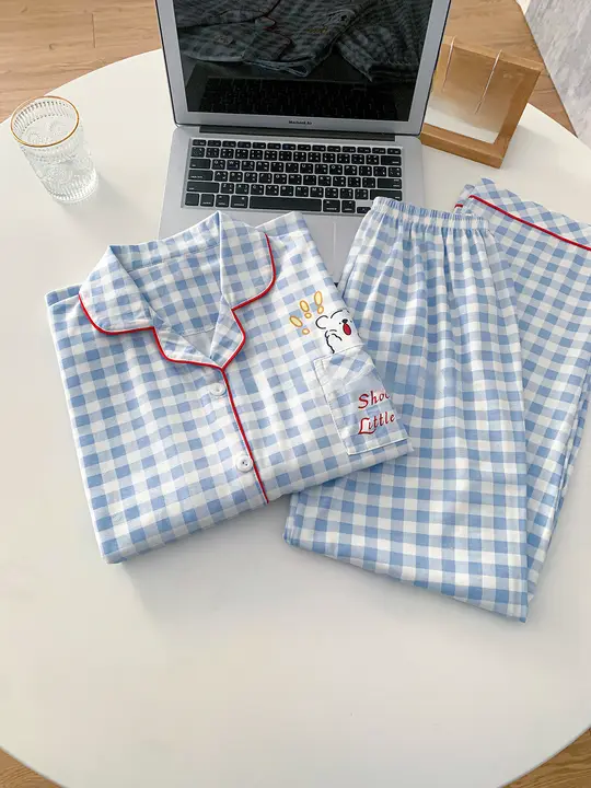 チェック柄コットンパジャマ【カーディガンタイプ・春秋用・可愛いデザイン・レディース】