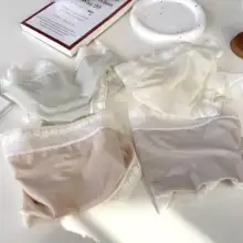 helloxiaoxiao フランス風レース薄手セクシーアイスシルク無縫製ハイウエストショーツ【中臀部対応】