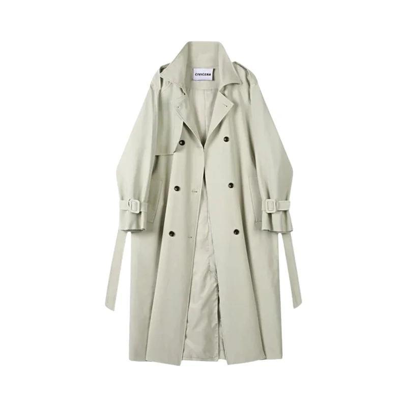 CIVICERA 秋季用 長袖 ロングトレンチコート【ウエストシェイプ・ルーズフィット・レトロスタイル】