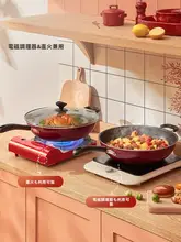 【34cm レッド】ガス電磁調理器ユニバーサル+無料木製シャベル