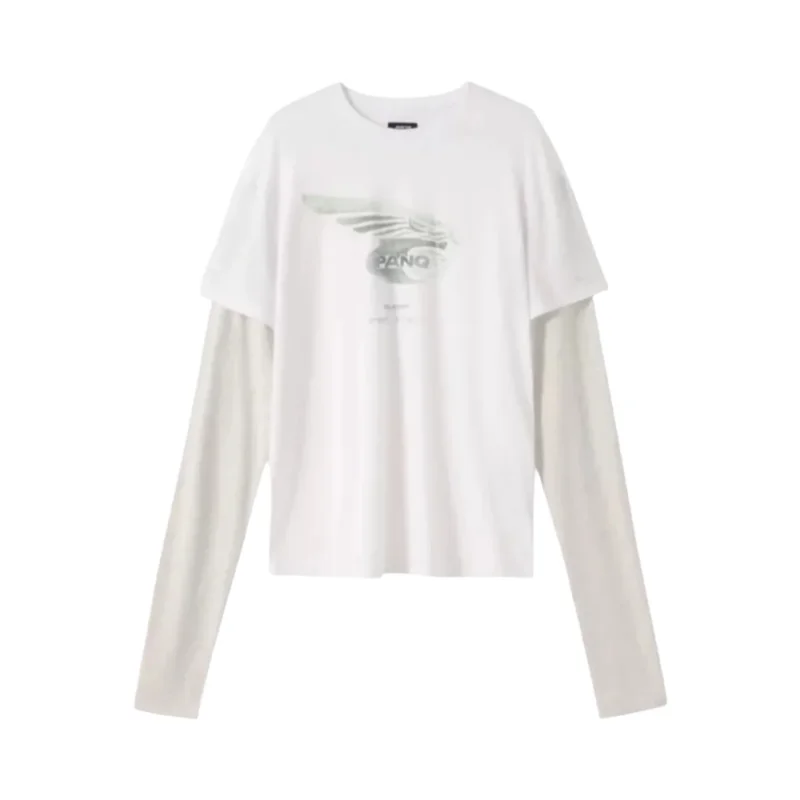 PANQ アメリカンレトロ風プリント長袖Tシャツ【ユニセックス・カジュアル・レイヤード風】