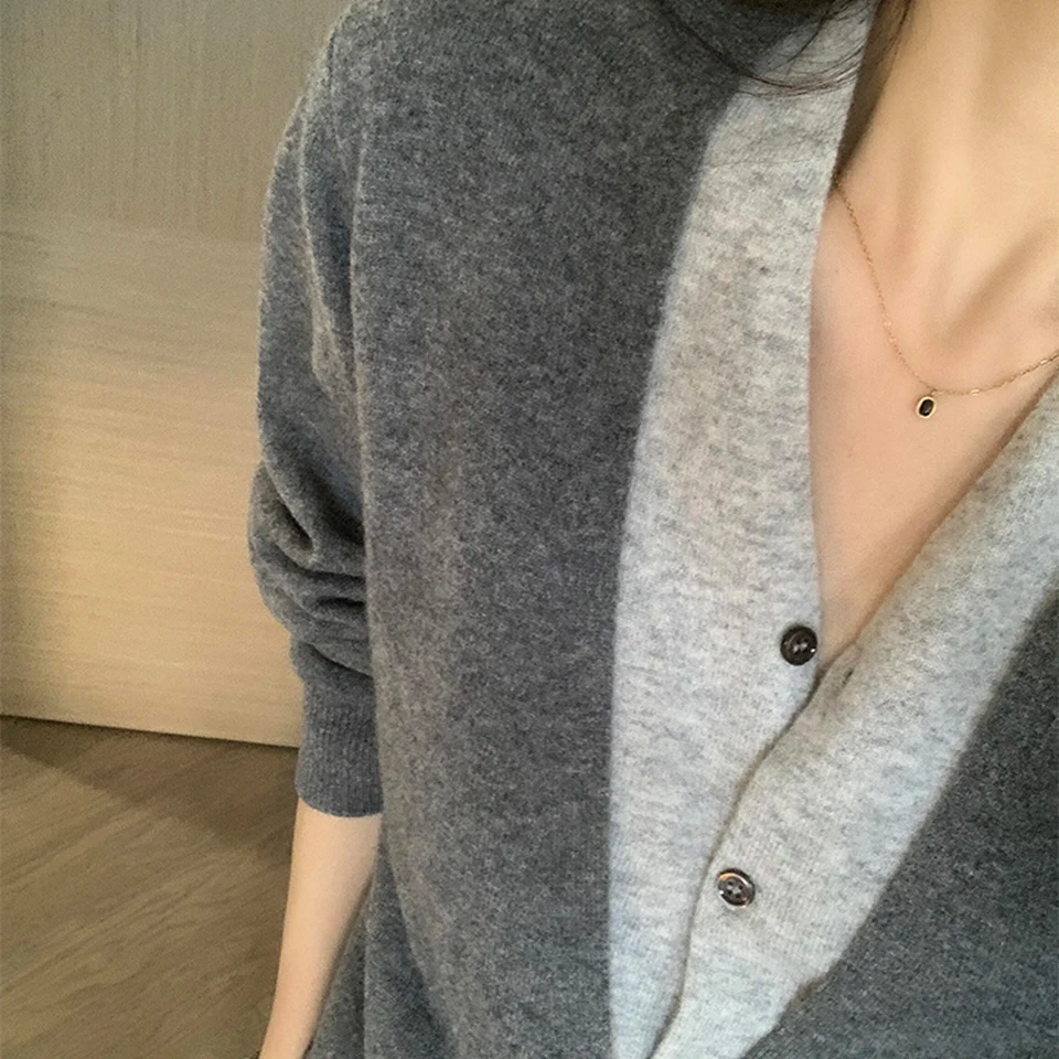 カーディガン 女性 秋冬 ニット Vネック 重ね着 ストレッチ グレー おしゃれ