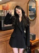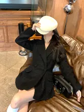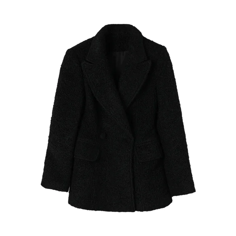 一頭阿瓜 冬用レトロスタイルのウエストマーク黒ウールコート【60%ウール】