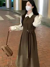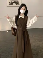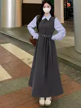 レディース 長袖冬用レイヤードドレス【大きいサイズ・ウエストシェイプ・エレガント】