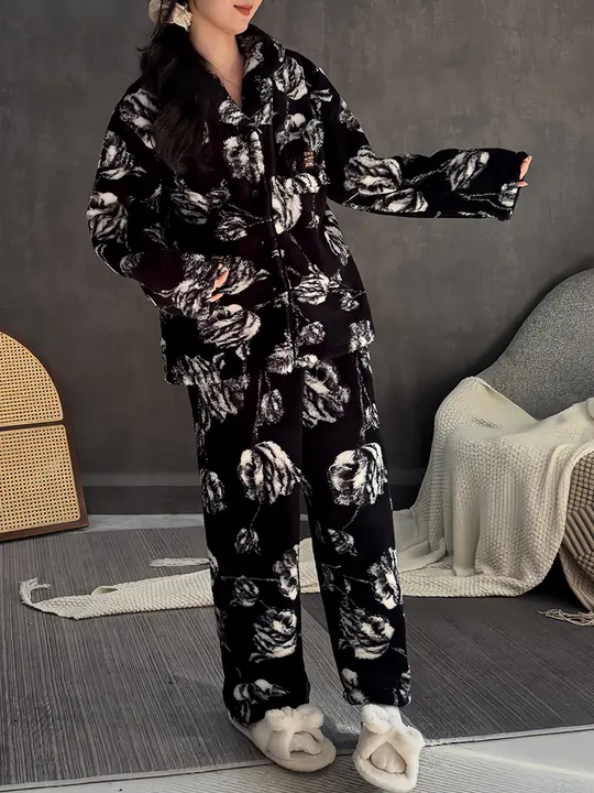 レディース秋冬用コーラルフリース厚手ルームウェア【長袖カーディガン・高級感・フランネルセット】