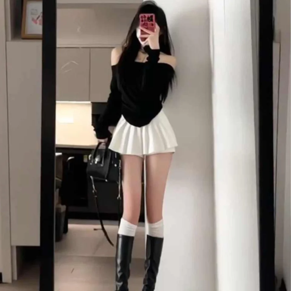 ミニマリストの魅力!高級感漂う百褶スカート付きジャケット風セット【秋冬用・一体型・小柄向け】