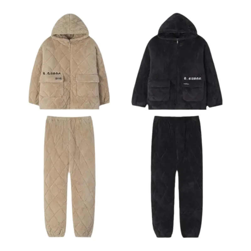 パジャマ カップル 秋冬 三層 中綿 フリース 厚手 フード付き 暖かい ルームウェア セット