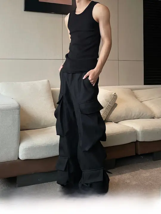 DAY NY 機能性大口ポケット重厚感工装パンツ【アメリカンスタイル・ワイドストレート・カジュアル】