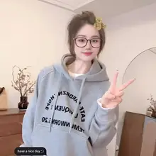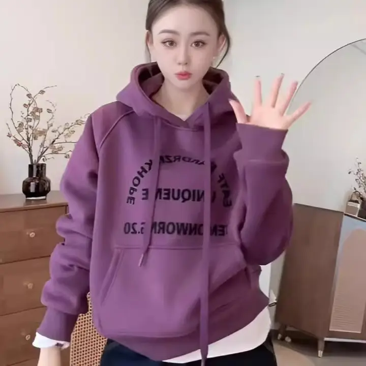 アメリカンビンテージ風 フード付き スウェットシャツ【長袖・ルーズフィット・セクシーなプリント】
