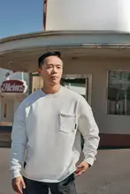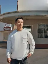 コントラストステッチ コットン長袖Tシャツ【スポーツ・カジュアル・ラウンドネック】