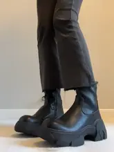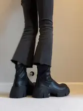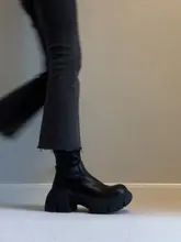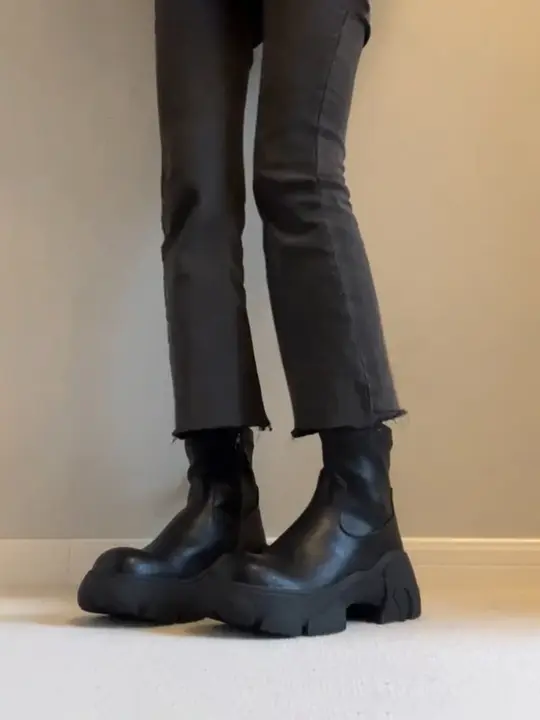牛革製 厚底ショートブーツ【レトロスタイル・側面ジッパー・高伸縮性】