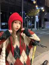 MLS 厚手保温ダイヤモンドパターンニットセーター【春用・レトロ・ゆったりフィット】