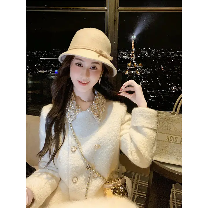 魚ウサギのウサギ 高級感ある羽毛内胆ウールコート レディース【冬用・ロング丈】