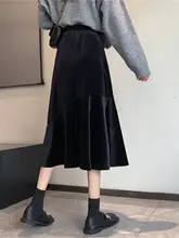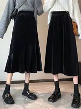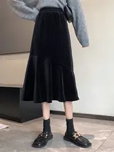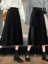 高級感ある冬用レディーススカート【ハイウエスト・ベル型・金絲绒・プリーツ】