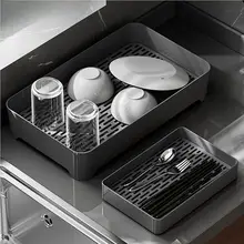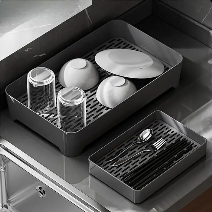 卓上ティー用品トレイ 水切りグラスホルダー【ガラス製・収納・便利グッズ】