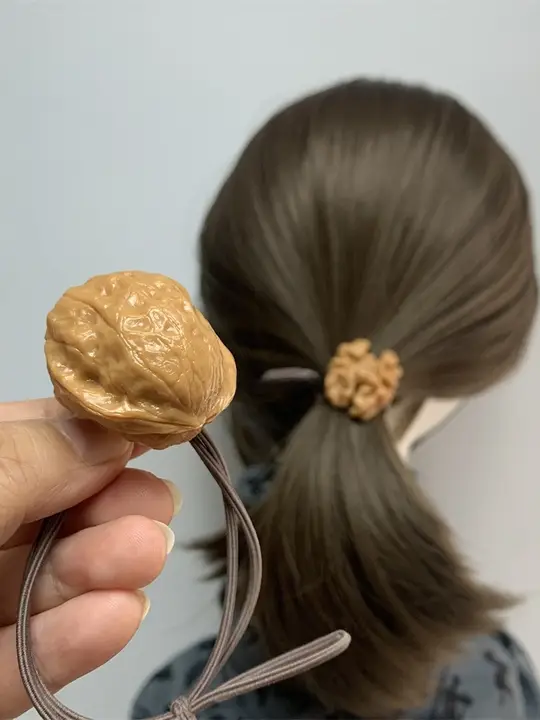 くるみデザインのヘアゴム【ユニークで楽しいギフト用・大人向け・ポニーテール用】