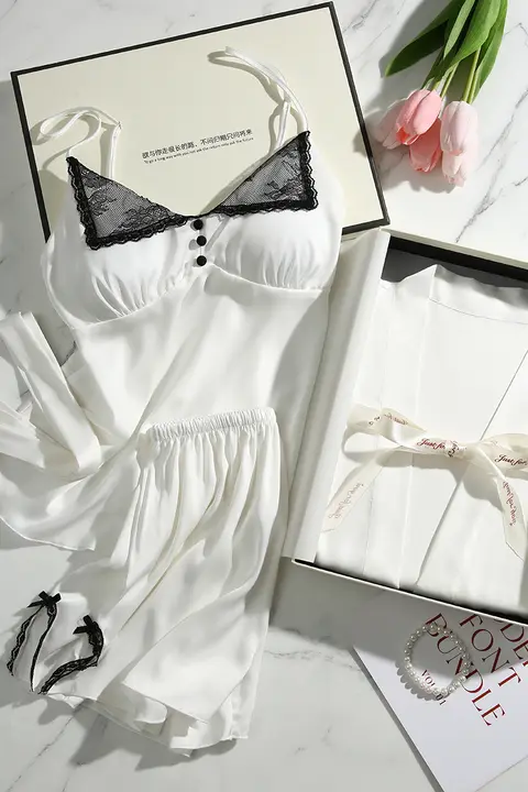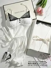 白いギフトボックス入りサスペンダー + ショーツ + ナイトガウン