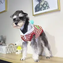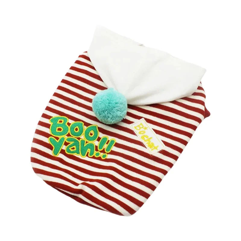 毛球付きストライプデザインの犬用春夏用ベスト【テディ・ビション・シュナウザー・トイプードル・ペット用・可愛い】