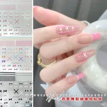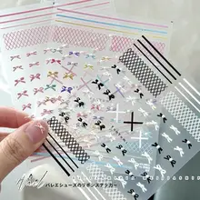 バレリーナシューズデザインのリボン付きネイルシール【ブラック&ホワイト・カラフル・レースリボン】