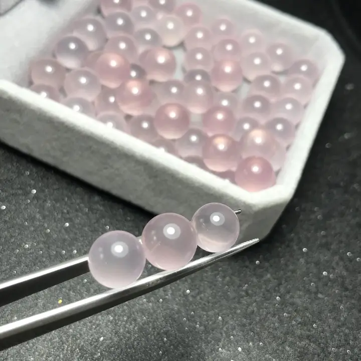 天然星光粉水晶ビーズ【穿孔対応・丸型・トラペーズデザイン】