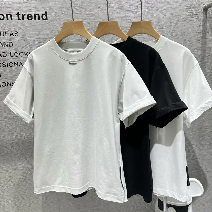 2025春夏厚手のコットンラウンドネック半袖Tシャツ